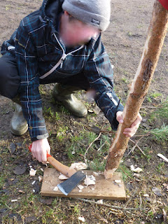 Etter lunsj gikk vi tur for å finne furu. Vi skal ha ei furu til å henge fuglemat i på tunet. Det er blitt hugget i skogen, så vi så etter om vi fant noen som allerede var hugget. Det fant vi ikke, men vi fant ei furu i Tveitan-skogen. Den hugger vi i morgen.